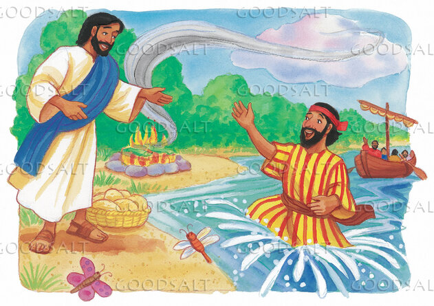 7 That disciple whom Jesus loved therefore said to Peter, “It is the Lord!” When Simon Peter heard that it was the Lord, he put on his outer garment, for he was stripped for work, and threw himself into the sea.
