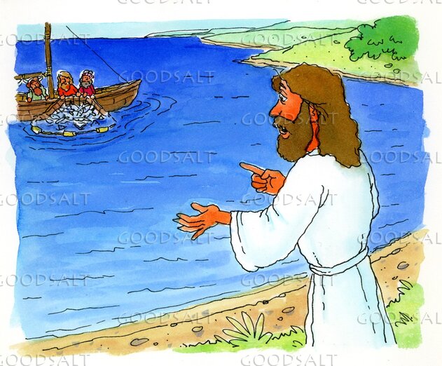 After a night of no fish Jesus instructs Peter to move to deeper water and lower his nets to catch fish. The nets overflowed. by Educational Concepts
