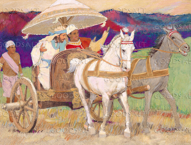 Philip and the Ethiopian study the scriptures together. by Lifeway Collection