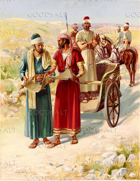 1 And Saul approved of his execution. And there arose on that day a great persecution against the church in Jerusalem, and they were all scattered throughout the regions of Judea and Samaria, except the apostles.2 Devout men buried Stephen and made great lamentation over him.3 But Saul was ravaging the church, and entering house after house, he dragged off men and women and committed them to prison.4 Now those who were scattered went about preaching the word.5 Philip went down to the city of Samaria and proclaimed to them the Christ.6 And the crowds with one accord paid attention to what was being said by Philip when they heard him and saw the signs that he did.7 For unclean spirits, crying out with a loud voice, came out of many who had them, and many who were paralyzed or lame were healed.8 So there was much joy in that city.9 But there was a man named Simon, who had previously practiced magic in the city and amazed the people of Samaria, saying that he himself was somebody great.10 They all paid attention to him, from the least to the greatest, saying, “This man is the power of God that is called Great.”11 And they paid attention to him because for a long time he had amazed them with his magic.12 But when they believed Philip as he preached good news about the kingdom of God and the name of Jesus Christ, they were baptized, both men and women.13 Even Simon himself believed, and after being baptized he continued with Philip. And seeing signs and great miracles performed, he was amazed.14 Now when the apostles at Jerusalem heard that Samaria had received the word of God, they sent to them Peter and John,15 who came down and prayed for them that they might receive the Holy Spirit,16 for he had not yet fallen on any of them, but they had only been baptized in the name of the Lord Jesus.17 Then they laid their hands on them and they received the Holy Spirit.18 Now when Simon saw that the Spirit was given through the laying on of the apostles' hands, he offered them money,19 saying, “Give me this power also, so that anyone on whom I lay my hands may receive the Holy Spirit.”20 But Peter said to him, “May your silver perish with you, because you thought you could obtain the gift of God with money!21 You have neither part nor lot in this matter, for your heart is not right before God.22 Repent, therefore, of this wickedness of yours, and pray to the Lord that, if possible, the intent of your heart may be forgiven you.23 For I see that you are in the gall of bitterness and in the bond of iniquity.”24 And Simon answered, “Pray for me to the Lord, that nothing of what you have said may come upon me.”25 Now when they had testified and spoken the word of the Lord, they returned to Jerusalem, preaching the gospel to many villages of the Samaritans.26 Now an angel of the Lord said to Philip, “Rise and go toward the south to the road that goes down from Jerusalem to Gaza.” This is a desert place.27 And he rose and went. And there was an Ethiopian, a eunuch, a court official of Candace, queen of the Ethiopians, who was in charge of all her treasure. He had come to Jerusalem to worship28 and was returning, seated in his chariot, and he was reading the prophet Isaiah.29 And the Spirit said to Philip, “Go over and join this chariot.”30 So Philip ran to him and heard him reading Isaiah the prophet and asked, “Do you understand what you are reading?”31 And he said, “How can I, unless someone guides me?” And he invited Philip to come up and sit with him.32 Now the passage of the Scripture that he was reading was this: “Like a sheep he was led to the slaughter and like a lamb before its shearer is silent, so he opens not his mouth.33 In his humiliation justice was denied him. Who can describe his generation? For his life is taken away from the earth.”34 And the eunuch said to Philip, “About whom, I ask you, does the prophet say this, about himself or about someone else?”35 Then Philip opened his mouth, and beginning with this Scripture he told him the good news about Jesus.36 And as they were going along the road they came to some water, and the eunuch said, “See, here is water! What prevents me from being baptized?”38 And he commanded the chariot to stop, and they both went down into the water, Philip and the eunuch, and he baptized him.39 And when they came up out of the water, the Spirit of the Lord carried Philip away, and the eunuch saw him no more, and went on his way rejoicing.40 But Philip found himself at Azotus, and as he passed through he preached the gospel to all the towns until he came to Caesarea.