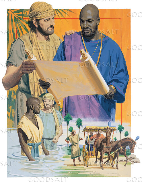 Three scenes depicting Philip and the Ethiopian. by Lifeway Collection