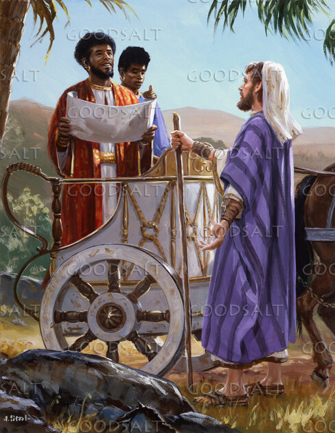 Philip tell the Ethiopian eunuch about Christ. by Lifeway Collection