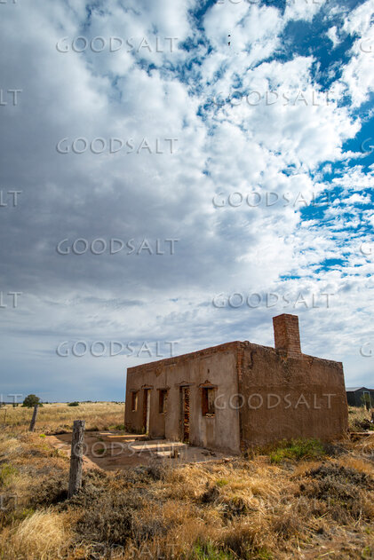 Historic remnants of pioneering hut at the tiny station town on closed railway line.