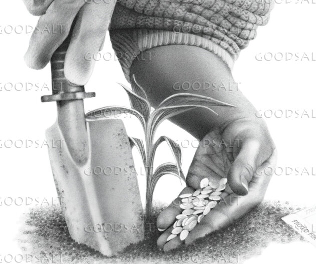 Planting seeds with trowel by Darrel Tank