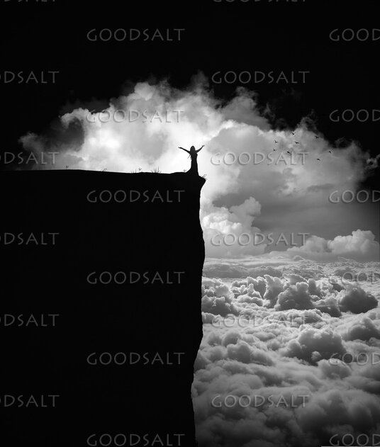 A silhouette of a woman on top of a mountain. by Kevin Carden