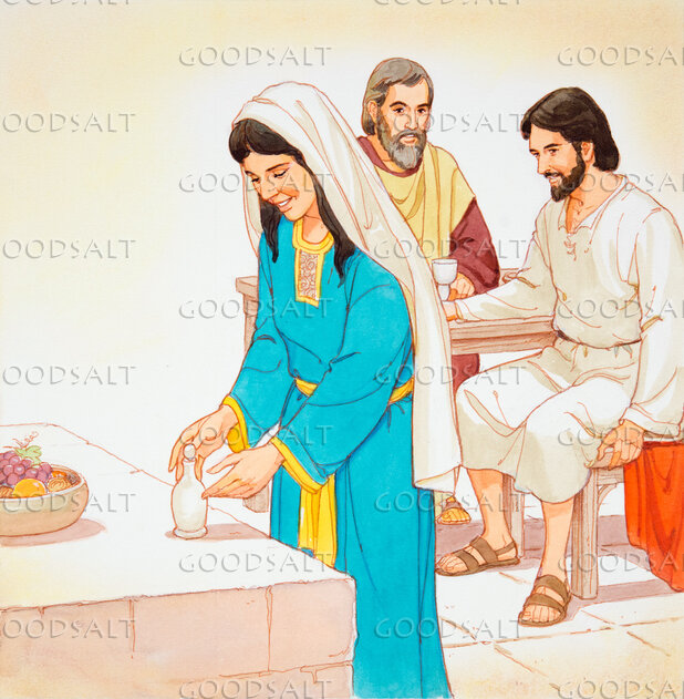 Mary Magdalene prepares to anoint Jesus with perfume. by Lifeway Collection