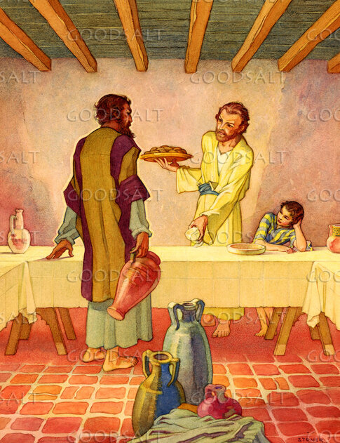 Luke 227 Then came the day of Unleavened Bread, on which the Passover lamb had to be sacrificed.8 So Jesus sent Peter and John, saying, “Go and prepare the Passover for us, that we may eat it.”9 They said to him, “Where will you have us prepare it?”10 He said to them, “Behold, when you have entered the city, a man carrying a jar of water will meet you. Follow him into the house that he enters11 and tell the master of the house, ‘The Teacher says to you, Where is the guest room, where I may eat the Passover with my disciples?’12 And he will show you a large upper room furnished; prepare it there.”13 And they went and found it just as he had told them, and they prepared the Passover.14 And when the hour came, he reclined at table, and the apostles with him.15 And he said to them, “I have earnestly desired to eat this Passover with you before I suffer.16 For I tell you I will not eat it until it is fulfilled in the kingdom of God.” Mark 1412 And on the first day of Unleavened Bread, when they sacrificed the Passover lamb, his disciples said to him, “Where will you have us go and prepare for you to eat the Passover?”13 And he sent two of his disciples and said to them, “Go into the city, and a man carrying a jar of water will meet you. Follow him,14 and wherever he enters, say to the master of the house, ‘The Teacher says, Where is my guest room, where I may eat the Passover with my disciples?’15 And he will show you a large upper room furnished and ready; there prepare for us.”16 And the disciples set out and went to the city and found it just as he had told them, and they prepared the Passover.17 And when it was evening, he came with the twelve. Matthew 2617 Now on the first day of Unleavened Bread the disciples came to Jesus, saying, “Where will you have us prepare for you to eat the Passover?”18 He said, “Go into the city to a certain man and say to him, ‘The Teacher says, My time is at hand. I will keep the Passover at your house with my disciples.’”19 And the disciples did as Jesus had directed them, and they prepared the Passover.20 When it was evening, he reclined at table with the twelve. | |