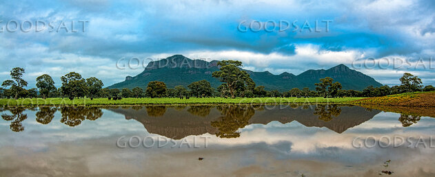 The southern end of the Serra and Mount William Ranges in Victoria's Grampian Ranges National Park including the small Mount Sturgeon, Mount Abrupt and Mount William - multi-frame merged panoramic. by Mal Austin