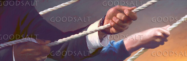 Hands pulling ropes by Steve Creitz