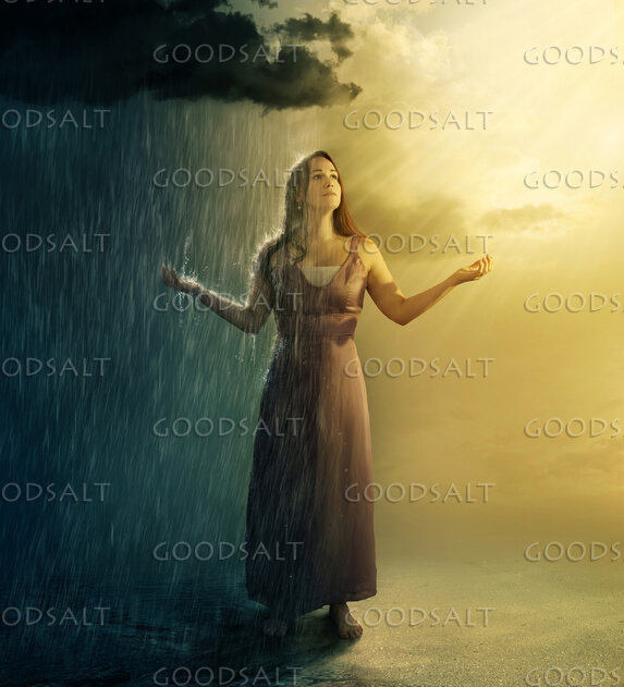A woman praises God in the rain and shine. by Kevin Carden