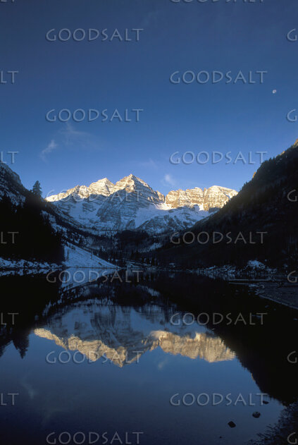 The reflection of snow-covered mountains on a lake. by Don Mammoser