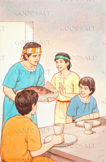 5 The king assigned them a daily portion of the food that the king ate, and of the wine that he drank. They were to be educated for three years, and at the end of that time they were to stand before the king.6 Among these were Daniel, Hananiah, Mishael, and Azariah of the tribe of Judah.7 And the chief of the eunuchs gave them names: Daniel he called Belteshazzar, Hananiah he called Shadrach, Mishael he called Meshach, and Azariah he called Abednego.8 But Daniel resolved that he would not defile himself with the king's food, or with the wine that he drank. Therefore he asked the chief of the eunuchs to allow him not to defile himself.