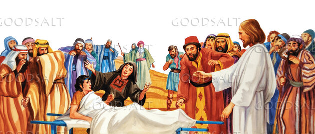 1. Jesus raise boy widow of nain son from dead crowd miracle resurrection outside wall of Jerusalem