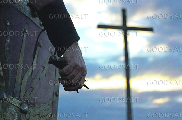 roman soldier facing cross by Frank Gampel