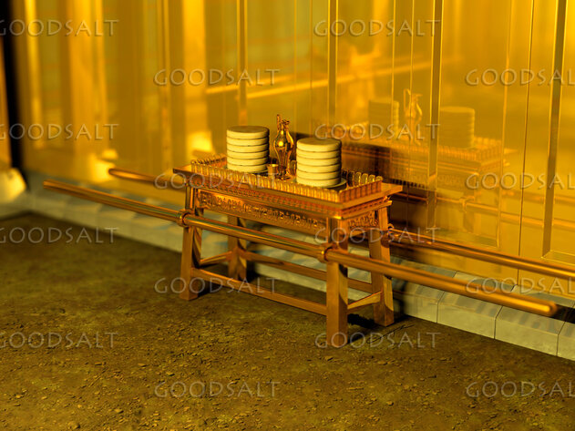 23 “You shall make a table of acacia wood. Two cubits shall be its length, a cubit its breadth, and a cubit and a half its height.24 You shall overlay it with pure gold and make a molding of gold around it.25 And you shall make a rim around it a handbreadth wide, and a molding of gold around the rim.26 And you shall make for it four rings of gold, and fasten the rings to the four corners at its four legs.27 Close to the frame the rings shall lie, as holders for the poles to carry the table.28 You shall make the poles of acacia wood, and overlay them with gold, and the table shall be carried with these.29 And you shall make its plates and dishes for incense, and its flagons and bowls with which to pour drink offerings; you shall make them of pure gold.30 And you shall set the bread of the Presence on the table before me regularly.