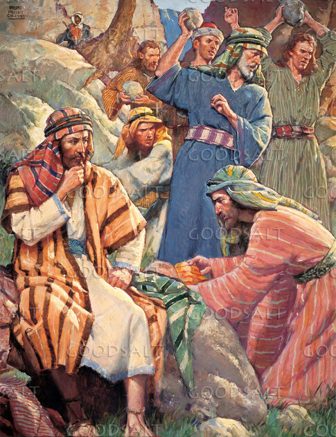 Group of angry men holding rocks. They appear to be stoning someone. by Lifeway Collection