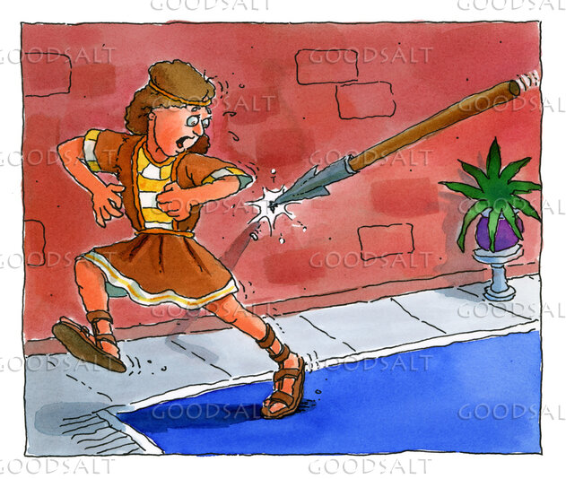 6 As they were coming home, when David returned from striking down the Philistine, the women came out of all the cities of Israel, singing and dancing, to meet King Saul, with tambourines, with songs of joy, and with musical instruments.7 And the women sang to one another as they celebrated, “Saul has struck down his thousands, and David his ten thousands.”8 And Saul was very angry, and this saying displeased him. He said, “They have ascribed to David ten thousands, and to me they have ascribed thousands, and what more can he have but the kingdom?”9 And Saul eyed David from that day on.10 The next day a harmful spirit from God rushed upon Saul, and he raved within his house while David was playing the lyre, as he did day by day. Saul had his spear in his hand.11 And Saul hurled the spear, for he thought, “I will pin David to the wall.” But David evaded him twice.