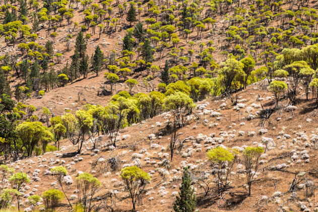 Unique crowded flora, hills and rocky ground of Flinders Ranges terrain by Mal Austin