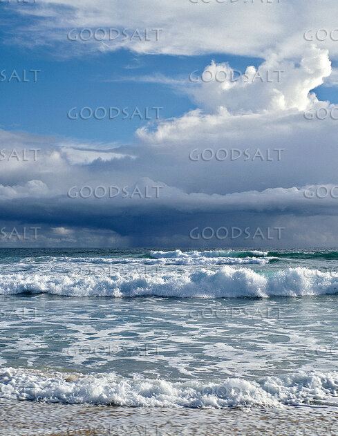 1. seascape with frothy waves and puffy clouds