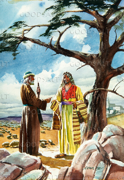 Jeroboam leaves Jerusalem. He meet Ahijah, the prophet. Ahijah took off new coat and ripped it into 12 pieces. He gave Jeroboam 10 pieces and told him that after Solomon died, Jeroboam would rule over the ten tribes. Solomon's son would rule o ver one tribe.