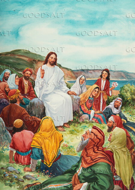 Jesus sits and gives the sermon on the mount to the multitude that sat around Him. He told them of His coming kingdom and of the home being prepared for those redeemed by Him.