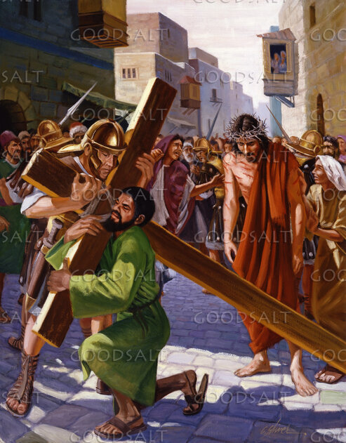 Simon the Cyrenian Carries Jesus' Cross by Lifeway Collection