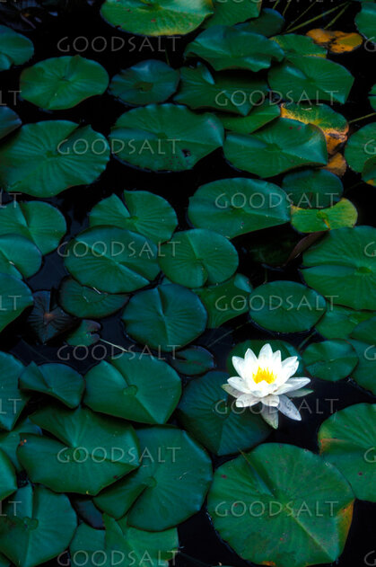 single white lily among green pads by John Baker
