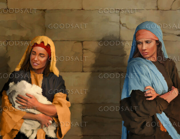Two women end their quarrel after Kind Solomon decides their case by General Conference