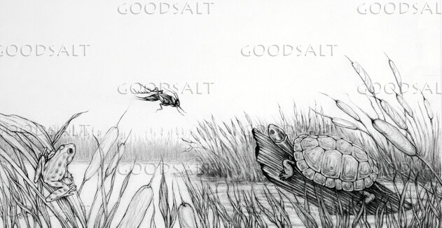 Drawing of various creatures in a summer pond. by IDEALS Collections