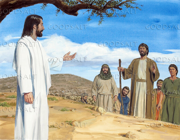 Jesus told his disciples to meet HIm on the mountain. Jesus is on the mountainside (hill country). The 11 disciples are going up the mountainside to join Him. by Lifeway Collection