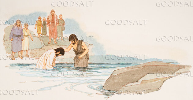 John the Baptist babtizes Jesus. by Lifeway Collection