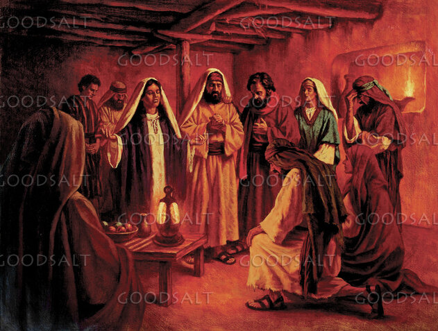 A fairly large group is gathered inside Mary's house to pray for Peter. This takes place at night. by Lifeway Collection