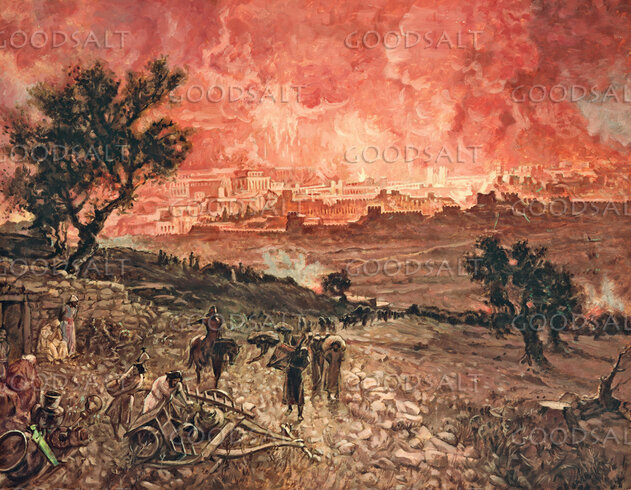 Luke 2137 And every day he was teaching in the temple, but at night he went out and lodged on the mount called Olivet. Luke 215 And while some were speaking of the temple, how it was adorned with noble stones and offerings, he said,6 “As for these things that you see, the days will come when there will not be left here one stone upon another that will not be thrown down.”7 And they asked him, “Teacher, when will these things be, and what will be the sign when these things are about to take place?”8 And he said, “See that you are not led astray. For many will come in my name, saying, ‘I am he!’ and, ‘The time is at hand!’ Do not go after them.9 And when you hear of wars and tumults, do not be terrified, for these things must first take place, but the end will not be at once.”10 Then he said to them, “Nation will rise against nation, and kingdom against kingdom.11 There will be great earthquakes, and in various places famines and pestilences. And there will be terrors and great signs from heaven.12 But before all this they will lay their hands on you and persecute you, delivering you up to the synagogues and prisons, and you will be brought before kings and governors for my name's sake.13 This will be your opportunity to bear witness.14 Settle it therefore in your minds not to meditate beforehand how to answer,15 for I will give you a mouth and wisdom, which none of your adversaries will be able to withstand or contradict.16 You will be delivered up even by parents and brothers and relatives and friends, and some of you they will put to death.17 You will be hated by all for my name's sake.18 But not a hair of your head will perish.19 By your endurance you will gain your lives.20 “But when you see Jerusalem surrounded by armies, then know that its desolation has come near.21 Then let those who are in Judea flee to the mountains, and let those who are inside the city depart, and let not those who are out in the country enter it,22 for these are days of vengeance, to fulfill all that is written.23 Alas for women who are pregnant and for those who are nursing infants in those days! For there will be great distress upon the earth and wrath against this people.24 They will fall by the edge of the sword and be led captive among all nations, and Jerusalem will be trampled underfoot by the Gentiles, until the times of the Gentiles are fulfilled.25 “And there will be signs in sun and moon and stars, and on the earth distress of nations in perplexity because of the roaring of the sea and the waves,26 people fainting with fear and with foreboding of what is coming on the world. For the powers of the heavens will be shaken.27 And then they will see the Son of Man coming in a cloud with power and great glory.28 Now when these things begin to take place, straighten up and raise your heads, because your redemption is drawing near.”29 And he told them a parable: “Look at the fig tree, and all the trees.30 As soon as they come out in leaf, you see for yourselves and know that the summer is already near.31 So also, when you see these things taking place, you know that the kingdom of God is near.32 Truly, I say to you, this generation will not pass away until all has taken place.33 Heaven and earth will pass away, but my words will not pass away.34 “But watch yourselves lest your hearts be weighed down with dissipation and drunkenness and cares of this life, and that day come upon you suddenly like a trap.35 For it will come upon all who dwell on the face of the whole earth.36 But stay awake at all times, praying that you may have strength to escape all these things that are going to take place, and to stand before the Son of Man.”37 And every day he was teaching in the temple, but at night he went out and lodged on the mount called Olivet.38 And early in the morning all the people came to him in the temple to hear him. Mark 131 And as he came out of the temple, one of his disciples said to him, “Look, Teacher, what wonderful stones and what wonderful buildings!”2 And Jesus said to him, “Do you see these great buildings? There will not be left here one stone upon another that will not be thrown down.”3 And as he sat on the Mount of Olives opposite the temple, Peter and James and John and Andrew asked him privately,4 “Tell us, when will these things be, and what will be the sign when all these things are about to be accomplished?”5 And Jesus began to say to them, “See that no one leads you astray.6 Many will come in my name, saying, ‘I am he!’ and they will lead many astray.7 And when you hear of wars and rumors of wars, do not be alarmed. This must take place, but the end is not yet.8 For nation will rise against nation, and kingdom against kingdom. There will be earthquakes in various places; there will be famines. These are but the beginning of the birth pains.9 “But be on your guard. For they will deliver you over to councils, and you will be beaten in synagogues, and you will stand before governors and kings for my sake, to bear witness before them.10 And the gospel must first be proclaimed to all nations.11 And when they bring you to trial and deliver you over, do not be anxious beforehand what you are to say, but say whatever is given you in that hour, for it is not you who speak, but the Holy Spirit.12 And brother will deliver brother over to death, and the father his child, and children will rise against parents and have them put to death.13 And you will be hated by all for my name's sake. But the one who endures to the end will be saved.14 “But when you see the abomination of desolation standing where he ought not to be (let the reader understand), then let those who are in Judea flee to the mountains.15 Let the one who is on the housetop not go down, nor enter his house, to take anything out,16 and let the one who is in the field not turn back to take his cloak.17 And alas for women who are pregnant and for those who are nursing infants in thos