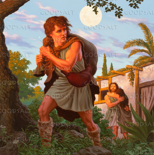 Cain is exiled from his family after murdering Abel. by Review & Herald Publishing