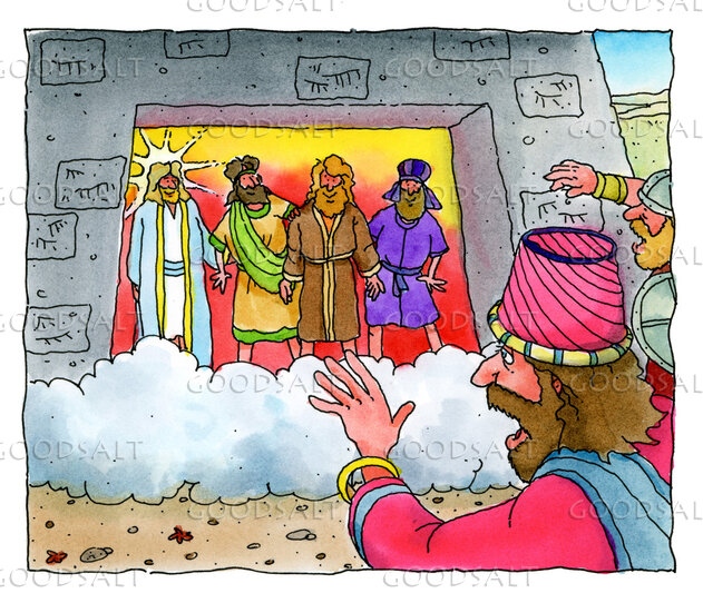 23 And these three men, Shadrach, Meshach, and Abednego, fell bound into the burning fiery furnace.24 Then King Nebuchadnezzar was astonished and rose up in haste. He declared to his counselors, “Did we not cast three men bound into the fire?” They answered and said to the king, “True, O king.”25 He answered and said, “But I see four men unbound, walking in the midst of the fire, and they are not hurt; and the appearance of the fourth is like a son of the gods.”