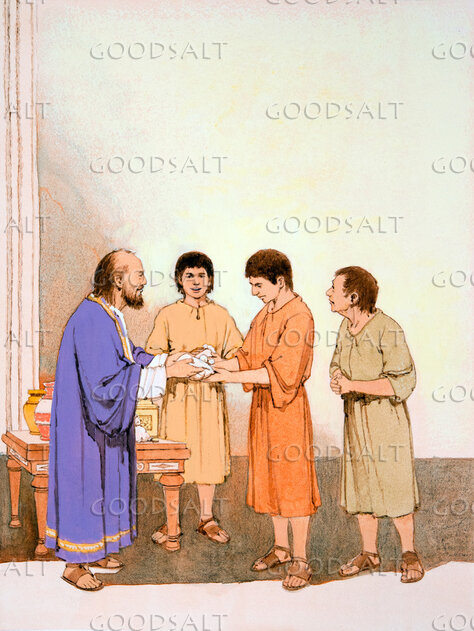 a man receives a gift from a ruler or priest by Lifeway Collection