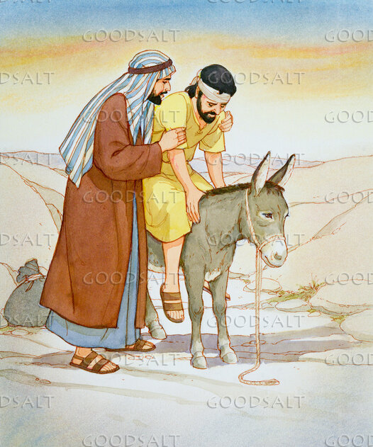 33 But a Samaritan, as he journeyed, came to where he was, and when he saw him, he had compassion.34 He went to him and bound up his wounds, pouring on oil and wine. Then he set him on his own animal and brought him to an inn and took care of him.