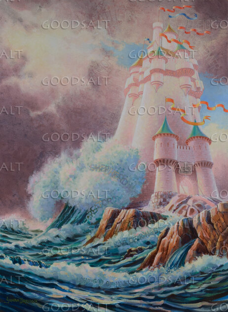 The art director of a Christian childrens magazine suggested that I create an illustration of a very high tower and encouraged me to weave some of Gods names in semi-hidden form throughout.