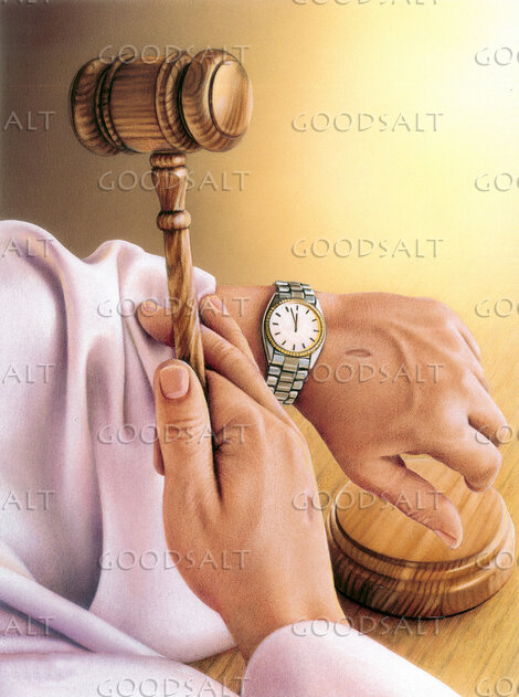 Jesus the judge checking His watch before the gavel comes down by Darrel Tank