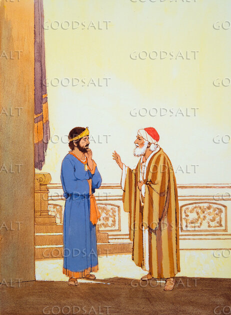 A king talks with an old prophet. by Lifeway Collection