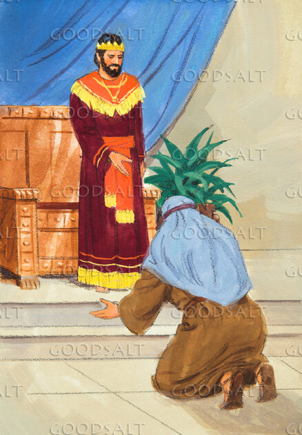 A man bows humbly before a king. by Lifeway Collection