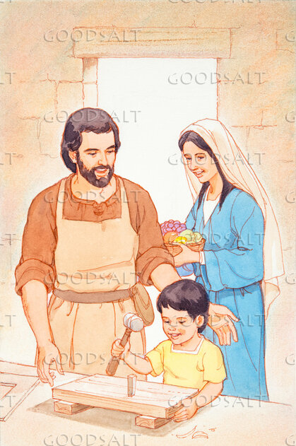 Young Jesus learn to work in Josephs shop. by Lifeway Collection