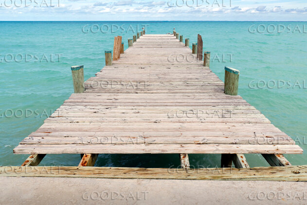 A view down a long pier, over the ocean, as if looking into the unknown future by John Baker