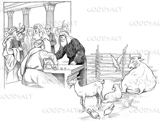Corrupt money changers in the Temple courtyard. by Review & Herald Publishing