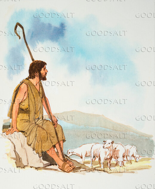 A shepherd watches over his flock. by Lifeway Collection