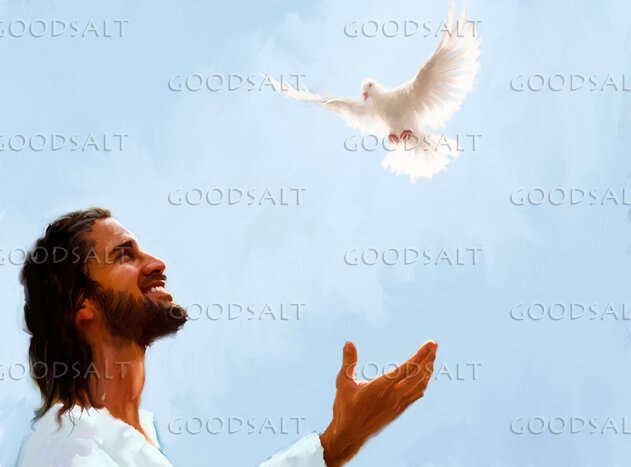The Hloy Spirit, in the form of a Dove, rests on Christ at His baptism by General Conference