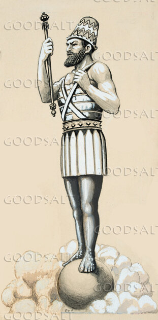 32 The head of this image was of fine gold, its chest and arms of silver, its middle and thighs of bronze,33 its legs of iron, its feet partly of iron and partly of clay.34 As you looked, a stone was cut out by no human hand, and it struck the image on its feet of iron and clay, and broke them in pieces.
