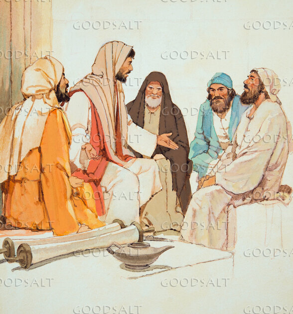 Jesus reasons with men in a gethering. by Lifeway Collection