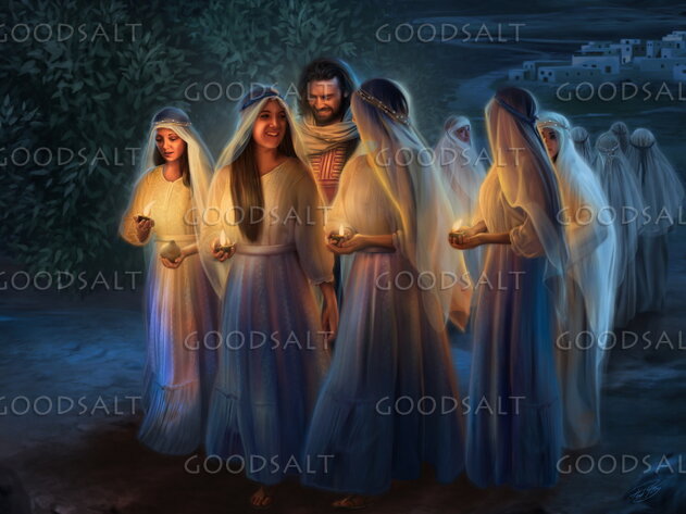and went to meet the bridegroom.2 Five of them were foolish, and five were wise.3 For when the foolish took their lamps, they took no oil with them,4 but the wise took flasks of oil with their lamps.5 As the bridegroom was delayed, they all became drowsy and slept.6 But at midnight there was a cry, ‘Here is the bridegroom! Come out to meet him.’7 Then all those virgins rose and trimmed their lamps.8 And the foolish said to the wise, ‘Give us some of your oil, for our lamps are going out.’9 But the wise answered, saying, ‘Since there will not be enough for us and for you, go rather to the dealers and buy for yourselves.’10 And while they were going to buy, the bridegroom came, and those who were ready went in with him to the marriage feast, and the door was shut.11 Afterward the other virgins came also, saying, ‘Lord, lord, open to us.’12 But he answered, ‘Truly, I say to you, I do not know you.’13 Watch therefore, for you know neither the day nor the hour.