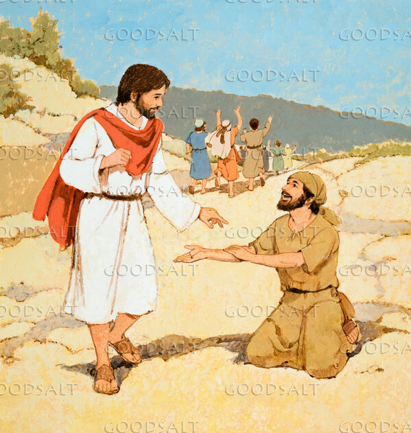11 On the way to Jerusalem he was passing along between Samaria and Galilee.12 And as he entered a village, he was met by ten lepers, who stood at a distance13 and lifted up their voices, saying, “Jesus, Master, have mercy on us.”14 When he saw them he said to them, “Go and show yourselves to the priests.” And as they went they were cleansed.15 Then one of them, when he saw that he was healed, turned back, praising God with a loud voice;